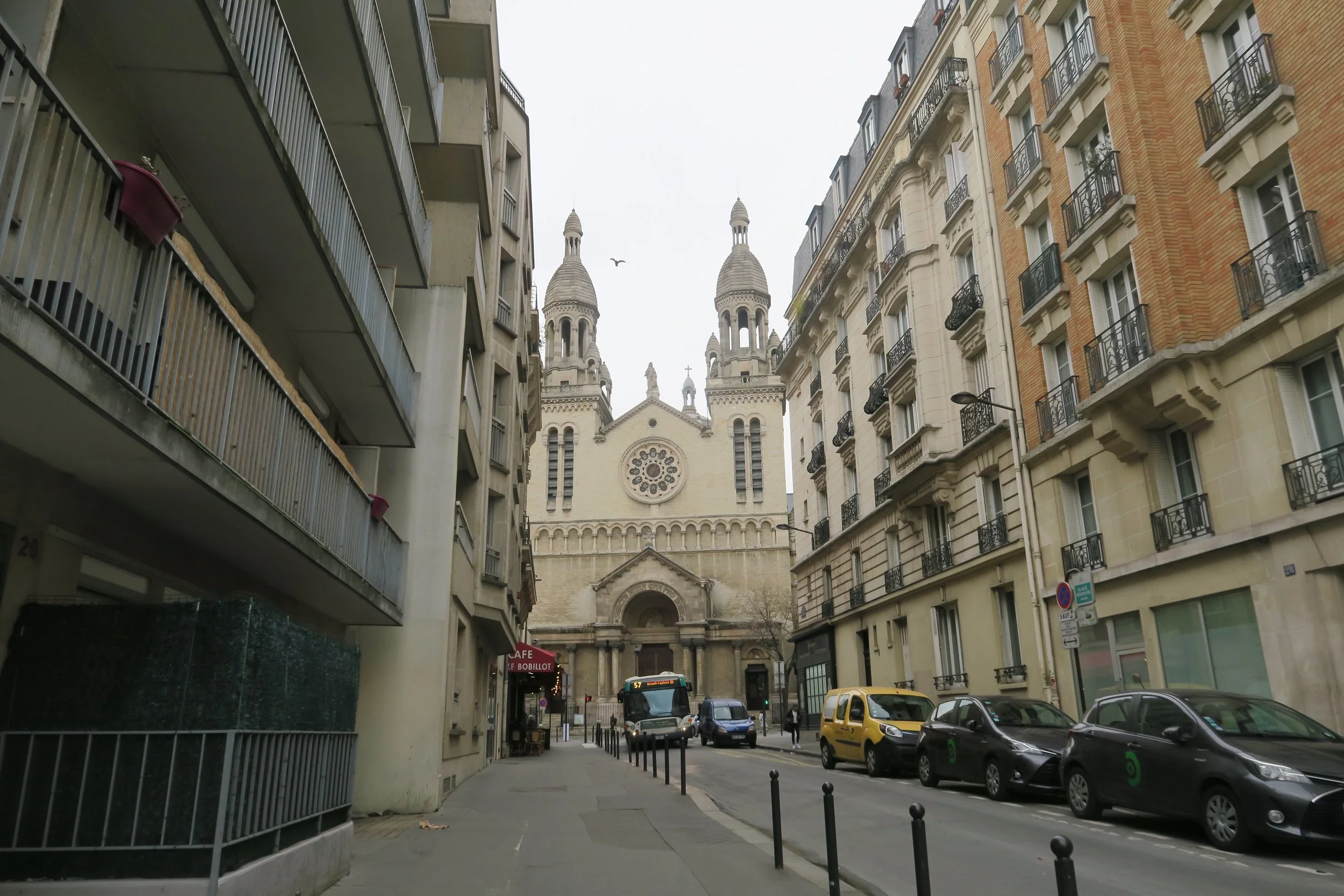 View of church in Buttes-Aux-Cailles in Paris, France; February 2022