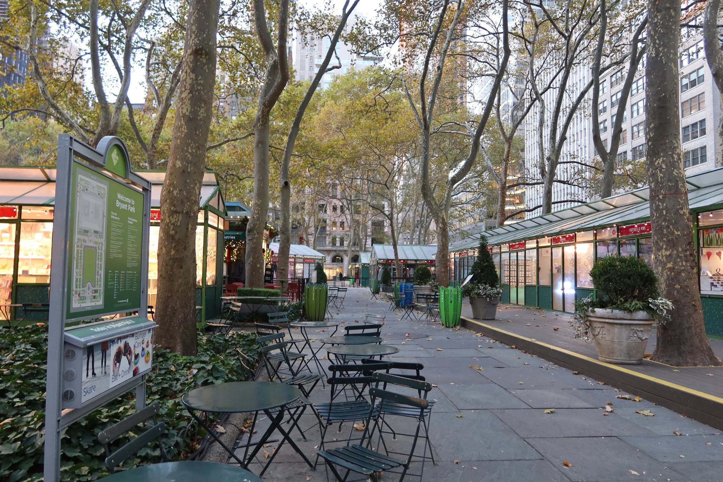 Bryant Park is already my favorite park in the city, for its European vibe, park chairs, and surrounding cafés – and it only gets more charming during the holiday season.