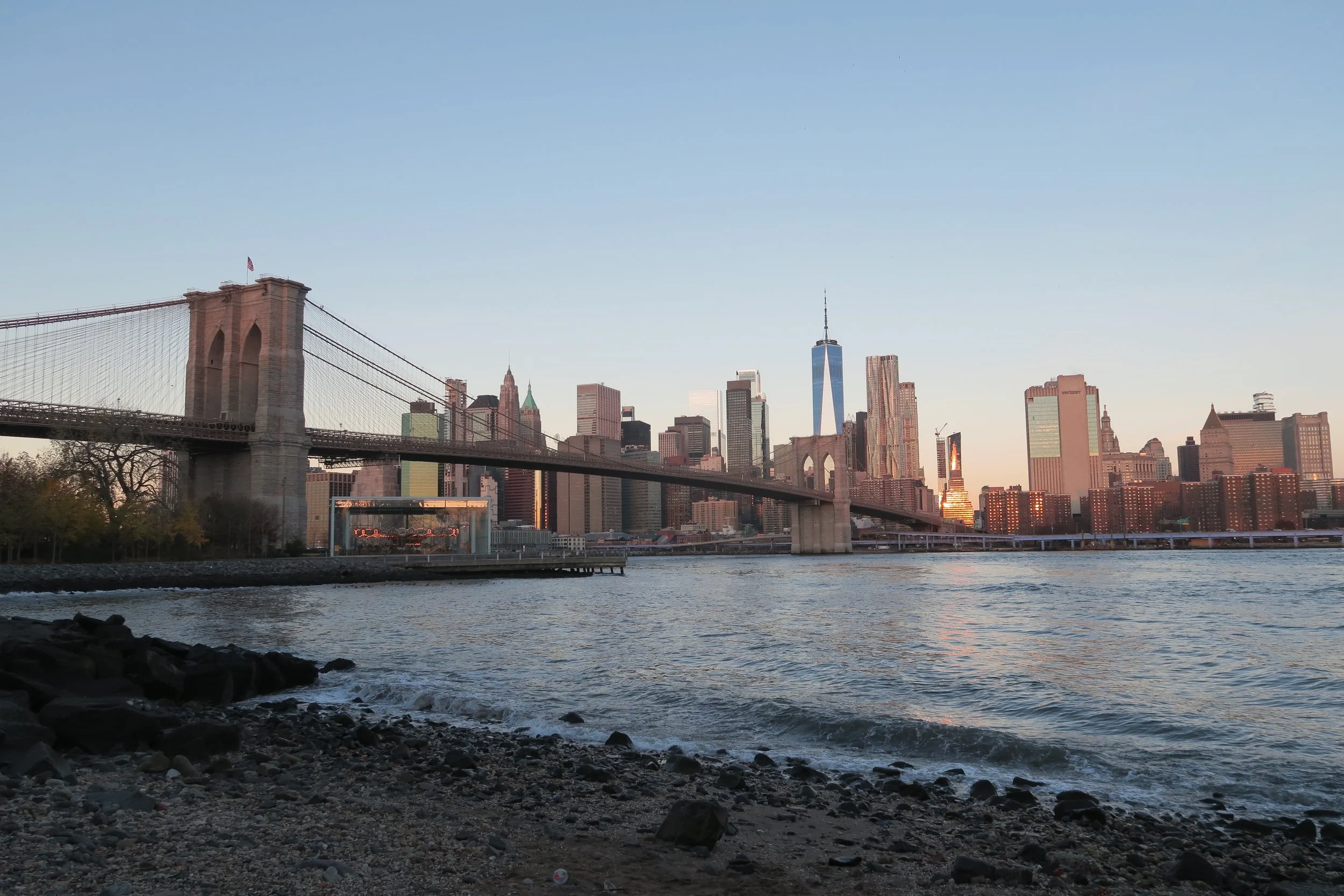 View of Manhattan from Pebble Brook Beach in Brookyln, New York; November 2024