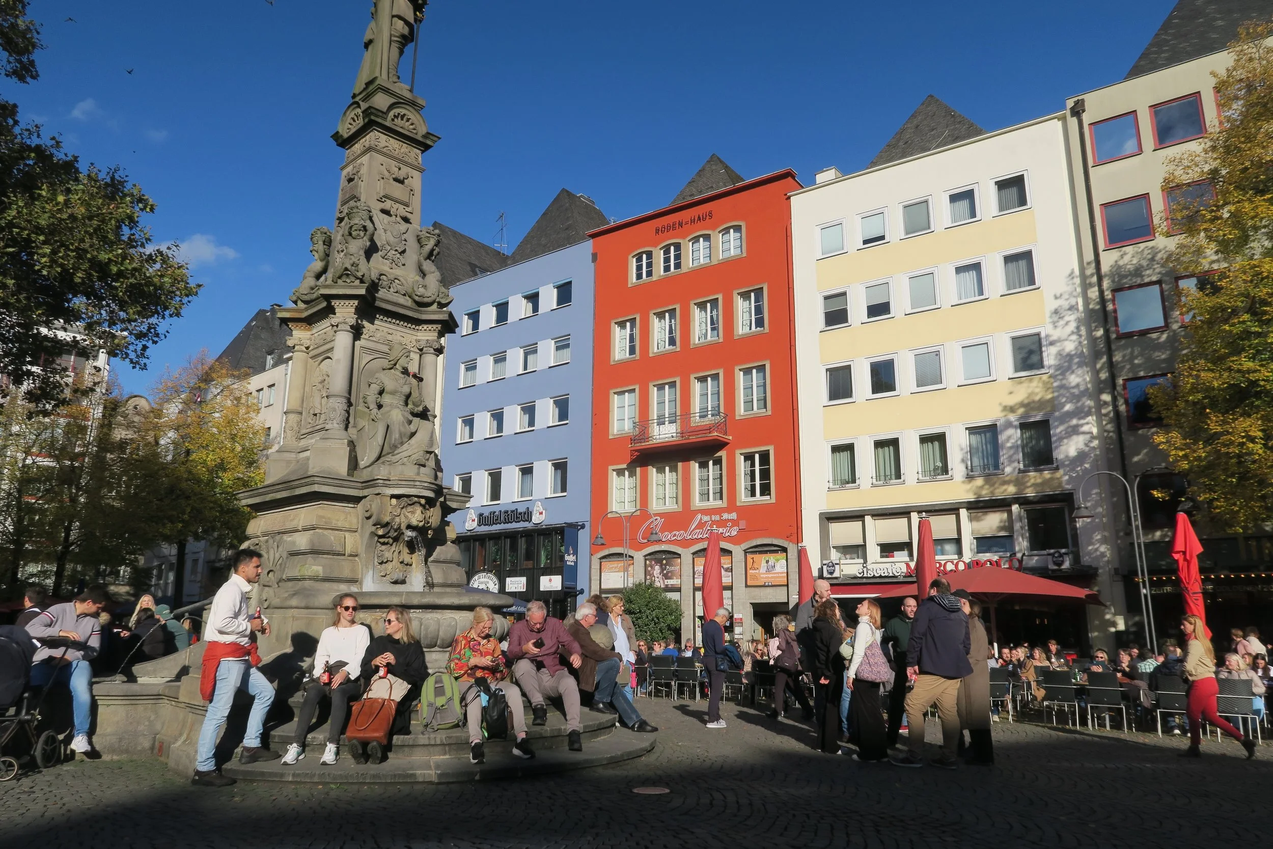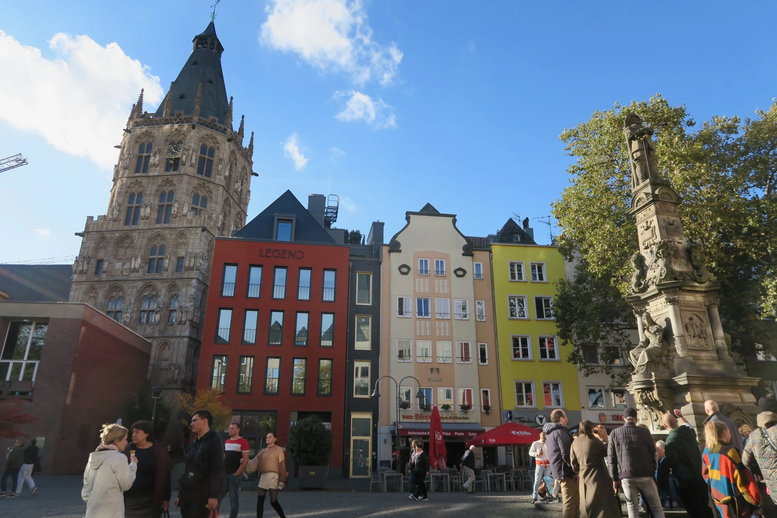Colorful buildings in Old Markt in Cologne, Germany; October 2024