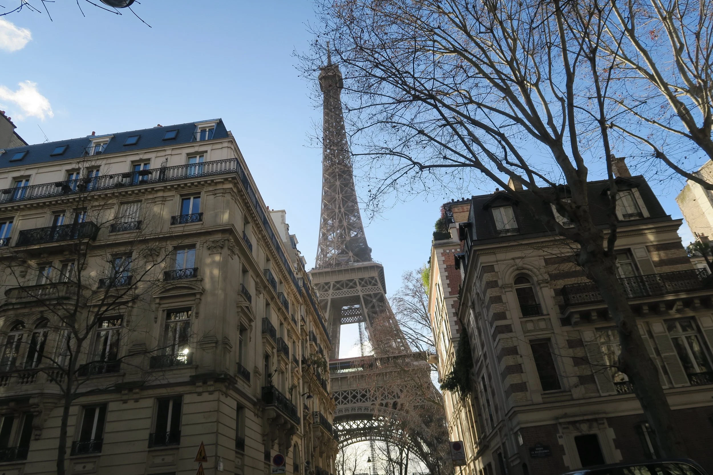 View of Eiffel Tower on Rue de l'Université; Janaury 2022